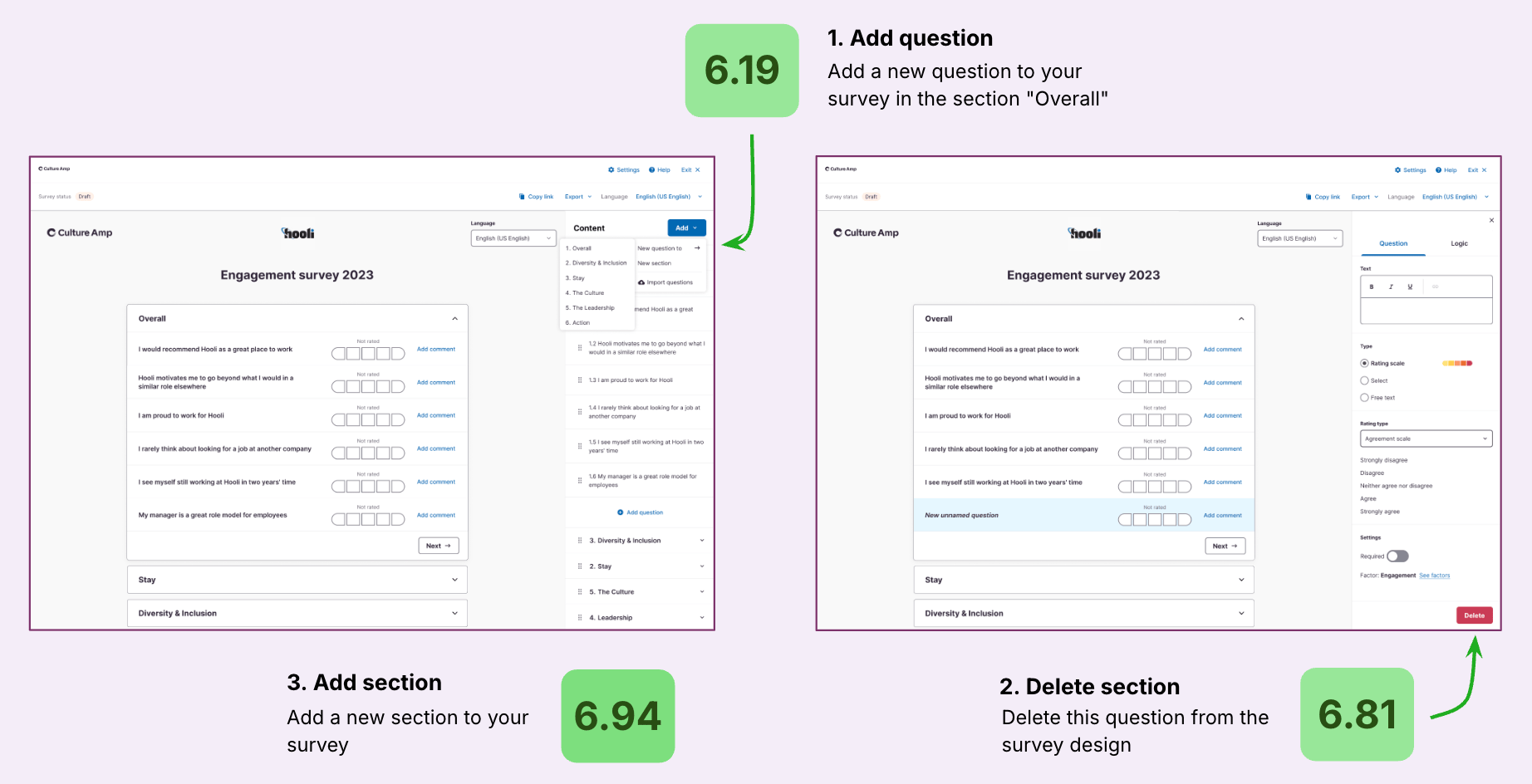 As the Lead Product Designer in the Engagement product I led the discovery and redesign of Culture Amp’s core survey design experience.